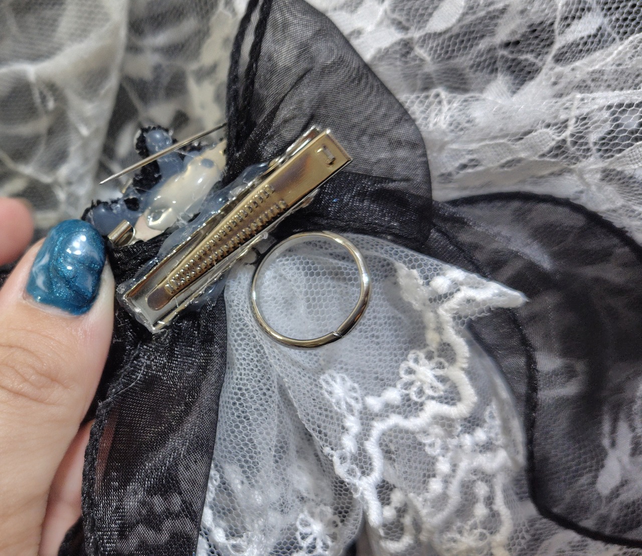 レジン製の満月に、リボンやレースをあしらって、あなたを照らす、唯一無二のアクセサリーに仕上げました。安全ピン・ヘアクリップ・フリーサイズの指輪付き。あなたのスタイルに合わせて身に着けてください。